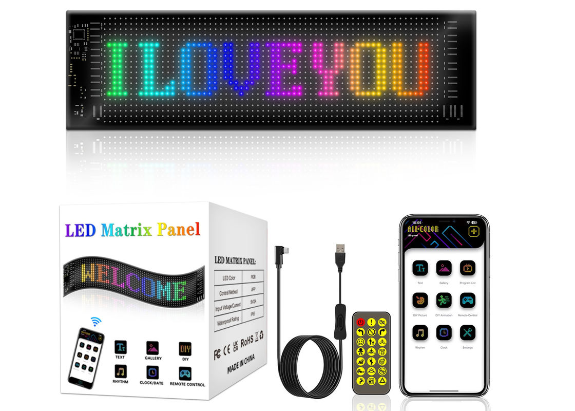 Εφαρμογή ελέγχου LED Δισκογραφείο 20 * 64 Ευέλικτο USB Προγραμματίσιμο Προσαρμοσμένο περιήγηση μηνύματος Σημάδια αυτοκινήτων Ψηφιακή οθόνη